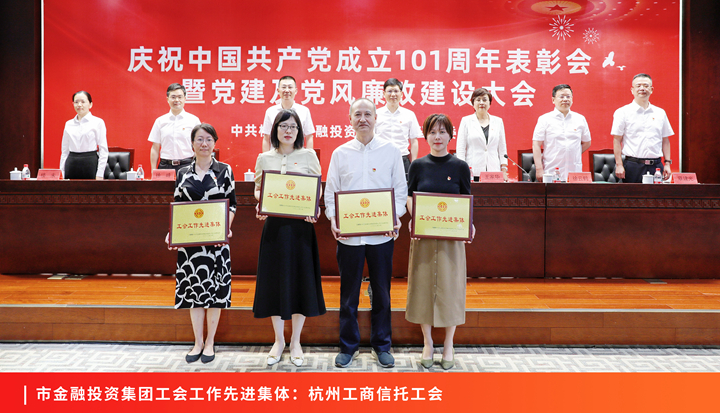 6月30日,杭州市金融投资集团有限公司召开庆祝中国共产党成立101周年表彰会暨党建及党风廉政建设大会,对2021年度先进基层党组织、优秀党员和党务工作者、工团先进集体和个人进行了表彰。
